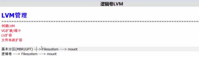 基本分区管理 逻辑卷LVM 逻辑卷快照 交换分区管理Swap EXT文件系统 XFS文件系统 Mount详解 文件链接link 磁盘阵列RAID lsof恢复文件 来源:oschina链接:https://my.oschina.net/u/4108568/blog/3175216 标签 存储管理