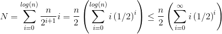 (0 * n/2) + (1 * n/4) + (2 * n/8) + ... + (h * 1).