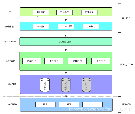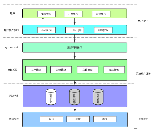 - 内核(进程管理,内存管理,文件管理,驱动管理)