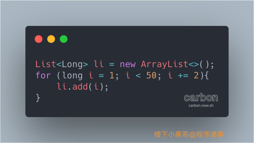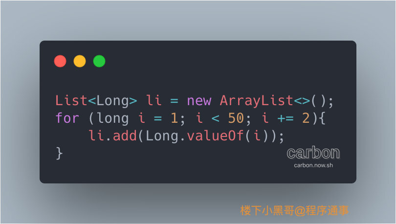 上面代码 li.add(i) 就发生自动装箱,将基本数据类型 long 转换为其包装类 Long。