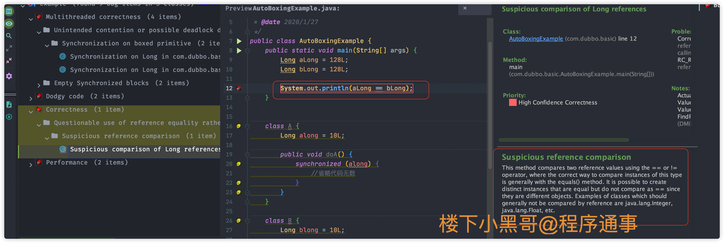 现在回想小黑哥当初写这段代码的时候,误以为两个 Long 对象比较将会进行自动拆箱,转变为两个基本数值类型比较。