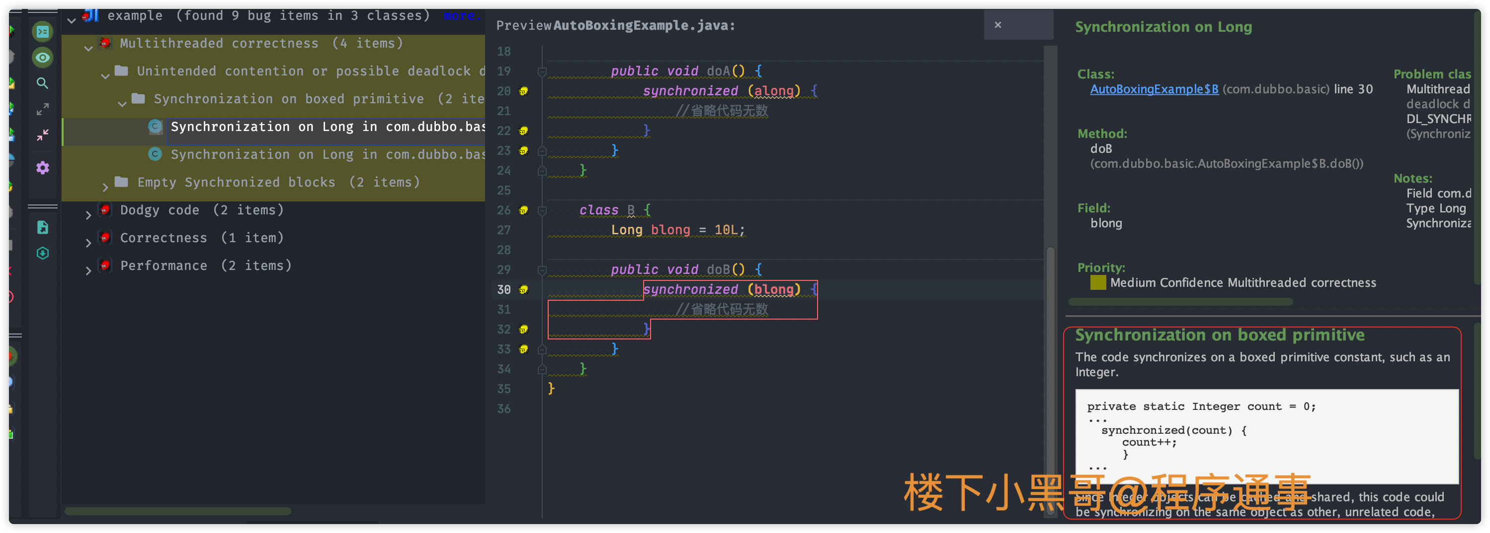 各位读者朋友们,请牢记这两个总结,不要踩中这两个坑哦。另外推荐大家安装一下 FindBugs 这个插件,通过这个插件扫描代码,可以找出代码中的相关缺陷。上面两个问题,通过 FindBugs都能扫描出来,简直神器。