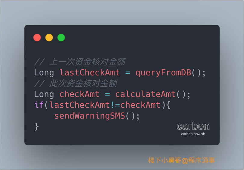春节假期,还躺在床上小黑哥,收到对账系统的一条预警短信,提示当前系统资金核对存在问题。关于资金的问题,都是大问题,小黑哥连忙拔出电脑,连上 VPN,登录生产环境的查看相关日志。