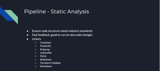 通过对代码静态分析对代码结构进行快速反馈,确保其符合行业标准。同时使用一系列的Linters进行不同类型的代码分析。