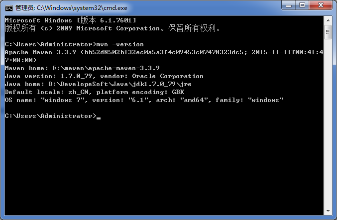 - 测试是否安装成功,打开CMD,输入mvn -version。