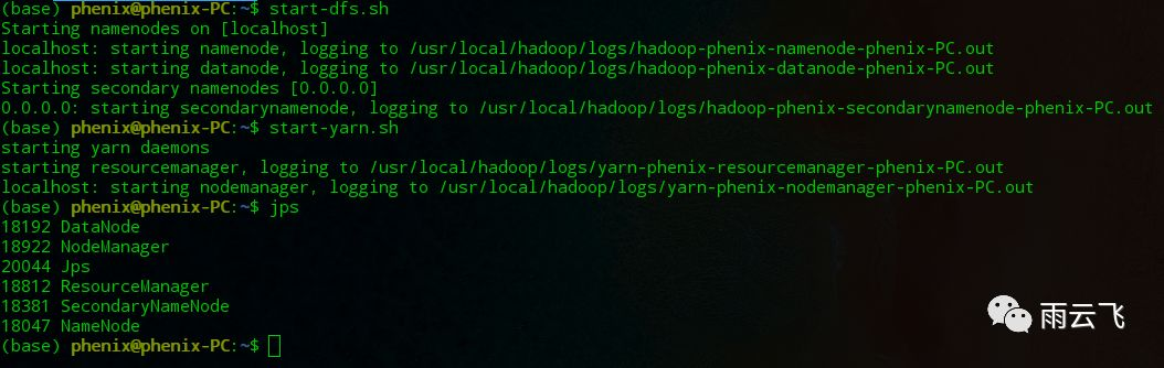 按照上一篇文章安装完Hadoop集群之后,启动hdfs文件系统及yarn资源管理器(也可通过start-dfs.sh和start-yarn.sh完成):