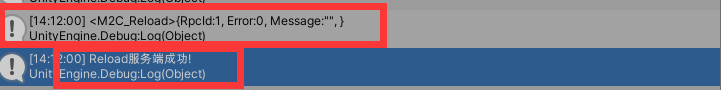 4.测试如果返回这个消息说明热更没问题。看到Unity输出返回的消息,服务器控制台输出“热更成功”的信息。