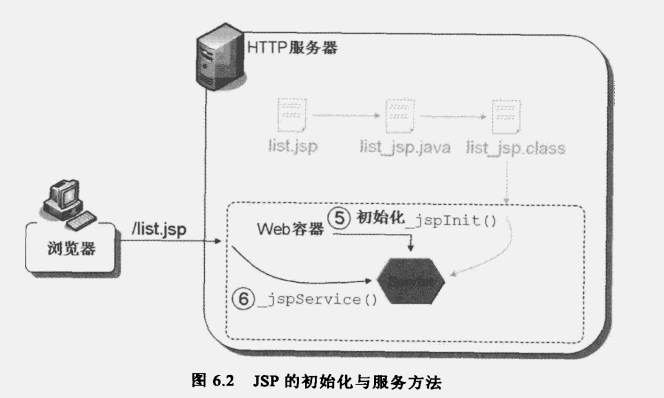 在<%!与%>之间声明的代码,都将转译为Servlet中的类成员或方法,之所以成为声明元素,是指它用来声明类成员或方法。所以使用<%!与%>声明变量时,必须小心数据共享与线程安全的问题。如果有一些初始化操作,想要在JSP载入时执行,则可以重新定义jspInit()方法,或是在jspDestroy()中定义结尾动作。定义jspInit()与jspDestroy()的方法,就是在<%!与%>之间进行,这样转译后的Servlet源代码,就会有相对应的方法片段出现。