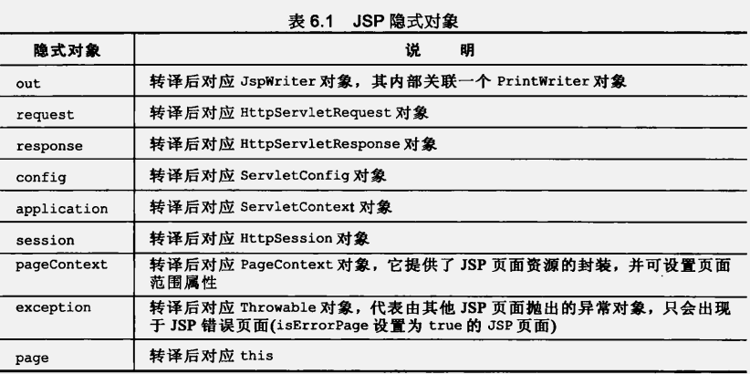 out隐式对象在转译后,会对应于javax.servlet.jsp.JspWriter类的实例,JspWriter则直接继承java.io.Writer类。JspWriter主要模拟了BufferWriter与PrintWriter的功能。JspWriter在内部也是使用PrinterWriter来进行输出,但JspWriter具有缓冲功能。当使用JspWriter的print()或println()进行响应输出时,如果JSP页面没有缓冲,则直接创建PrintWriter来输出响应,如果JSP页面有缓冲,则只有在清除(flush)缓冲区时,才会真正创建PrintWriter对象进行输出。