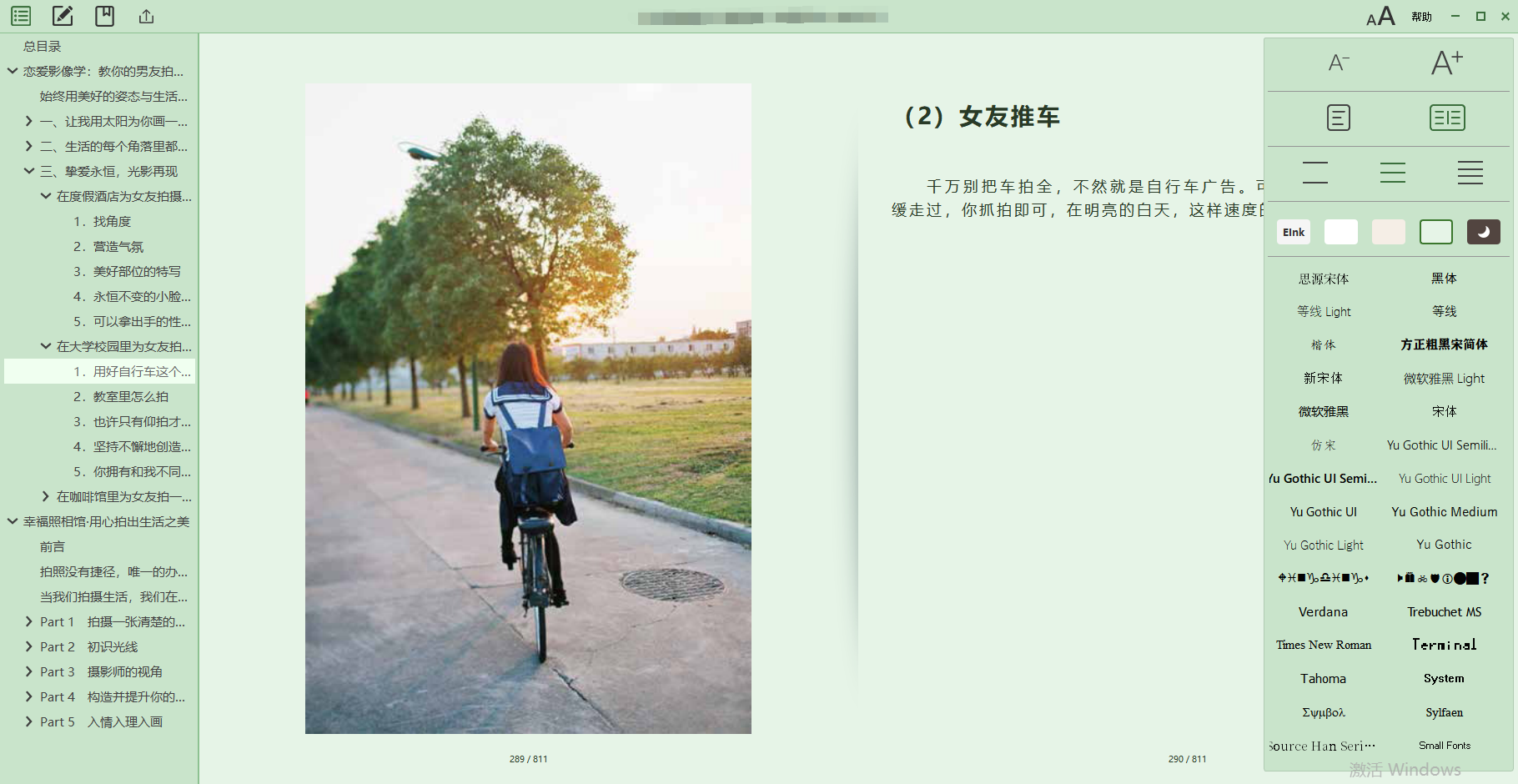 8. 可以自定义字体(拿到系统中的所有字体供选择)、字号、行间距、切换主题,并且最大的亮点:水墨主题。