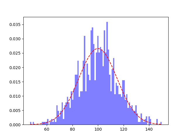 n, bins, patches = plt.hist(x, num_bins, normed=True, facecolor='blue', alpha=0.5)