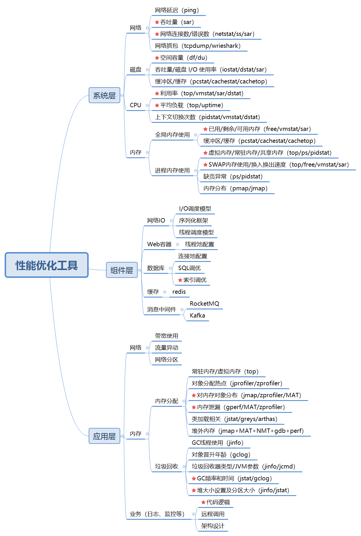 3、对性能优化的工具不是很了解。 遇到问题后,不清楚使用哪个工具,不知道通过工具得到的指标代表着什么。