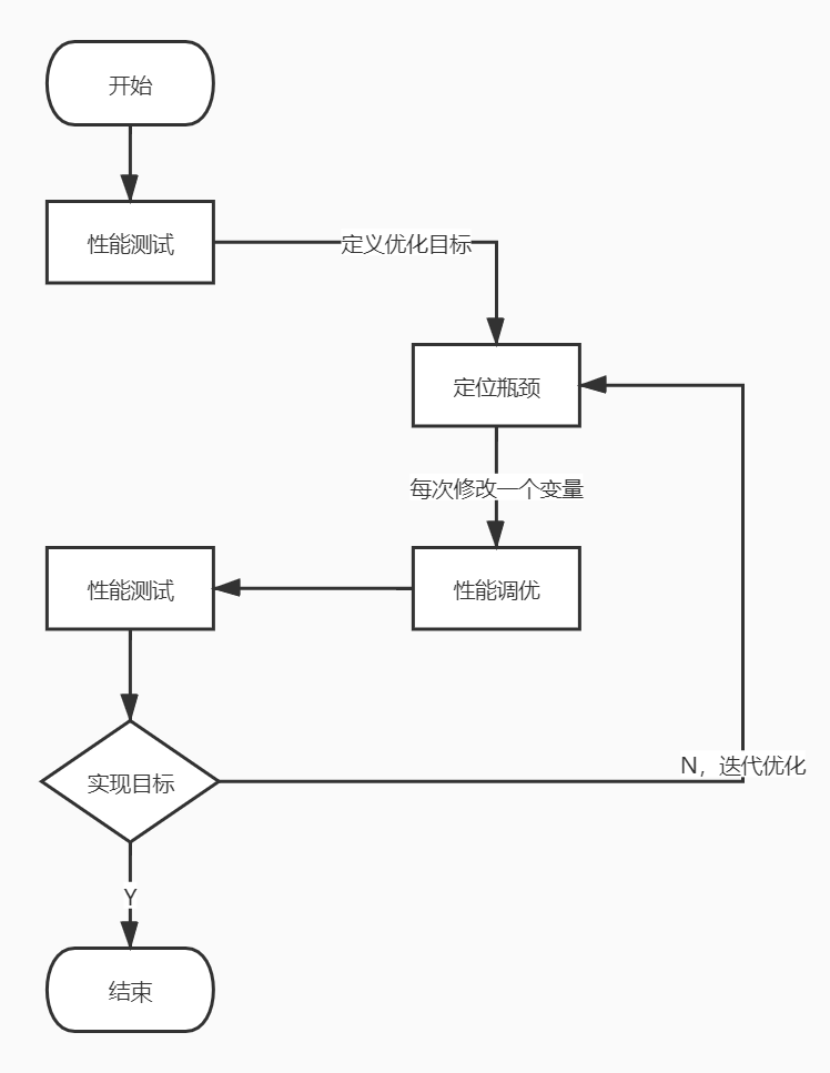 4、测试阶段: 让调优后的系统进行性能测试,与准备阶段的各项指标进行对比,观察其是否属于预期,如果瓶颈点没有消除或者性能指标不符合预期,则重复2和3步骤。