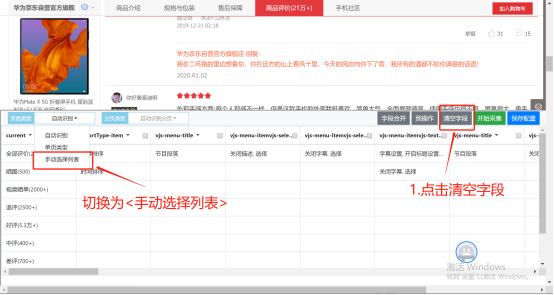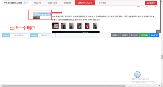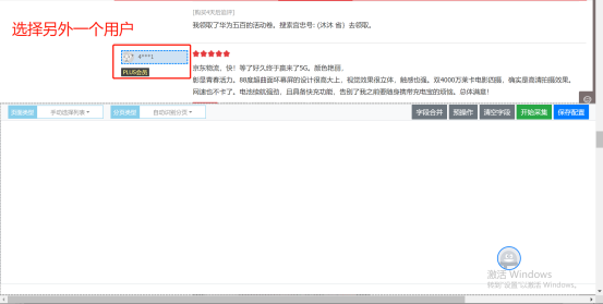 ④没有识别出评论信息,手工操作下:清空字段-->更改页面类型为手工识别列表 --> 选中两个一样元素(这里两个用户名称) -->下一页未自动识别成功-->更改分页类型为手动点击下一页-->配置完成-->开始采集