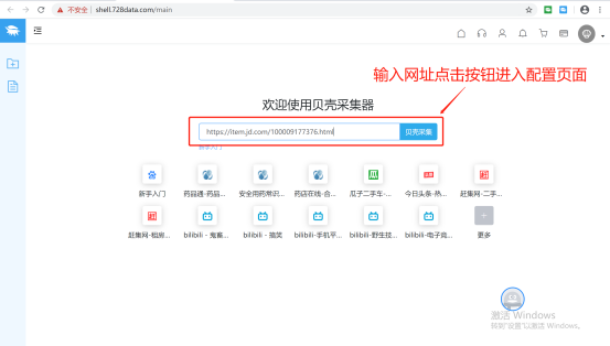 ②在采集平台输入网址,点击贝壳采集开始配置信息