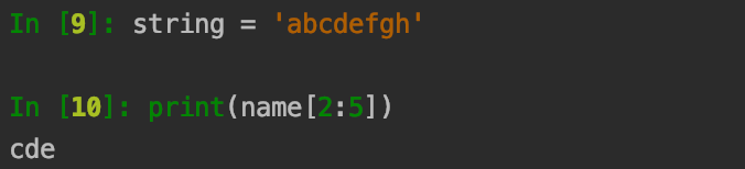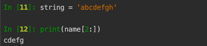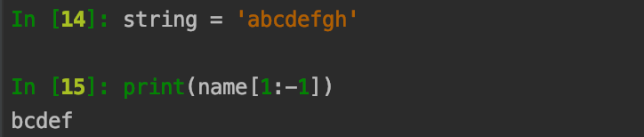 # 取 下标为1开始 到 最后第2个 之间的字符