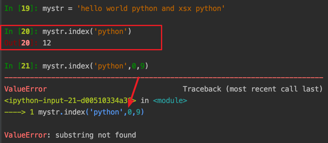 跟find()方法一样,只不过如果str不在 mystr中会报一个异常.