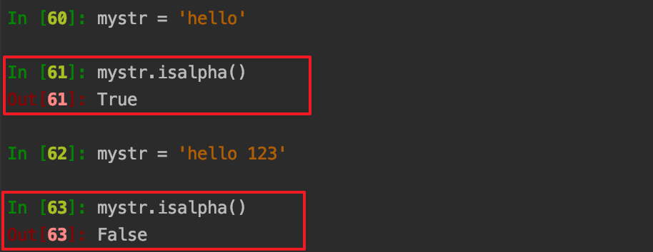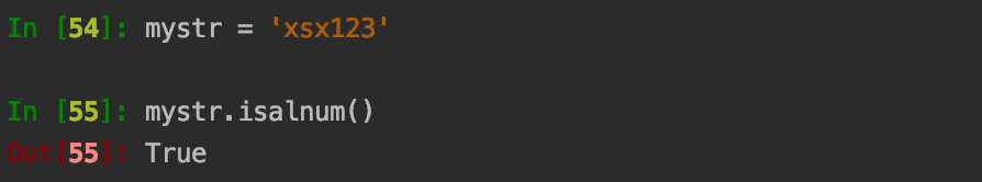 如果 mystr 所有字符都是字母或数字则返回 True,否则返回 False