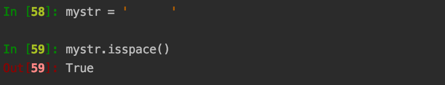 如果 mystr 中只包含空格,则返回 True,否则返回 False.