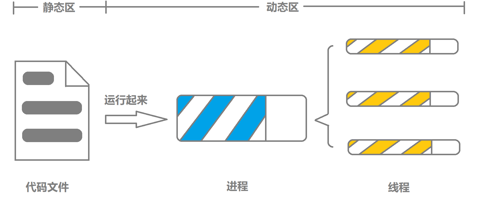 代码文件、进程、线程的简单关系,可以参照图1.3。