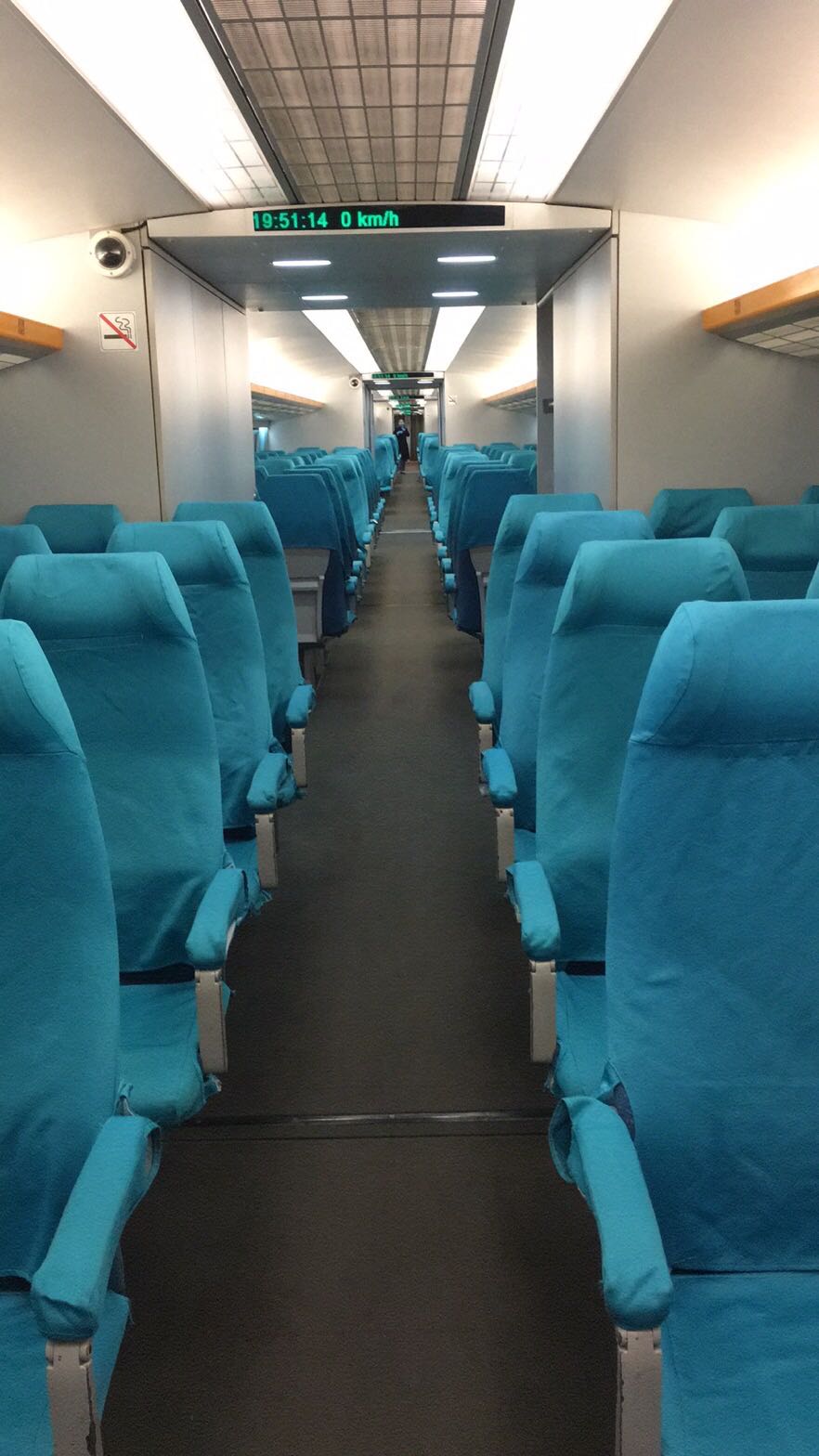 乘高铁到成都,高铁都是隔人坐的,人好少。