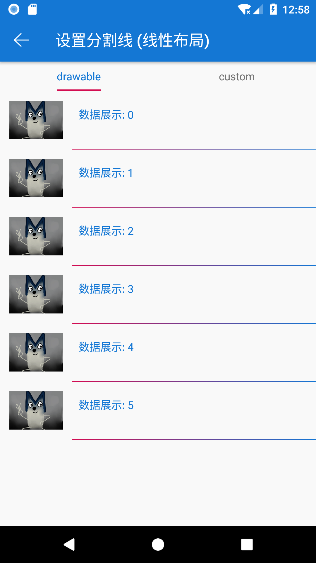 我基本上找遍了网上所有通过ItemDecorationd设置分隔线的文章,但都不尽如意,它们大多只适用于部分情况,比如只能给线性布局设置、只能设置color不能设置drawable、不能去除HeaderView部分的分割线、配置麻烦等等等。