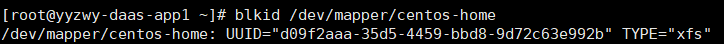 查看 /home目录分区文件系统类型:blkid /dev/mapper/centos-home