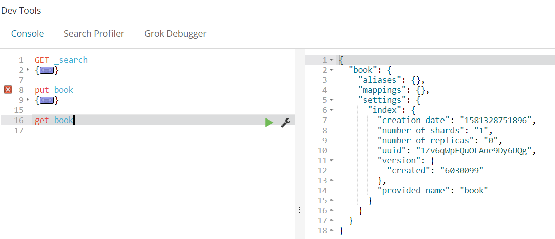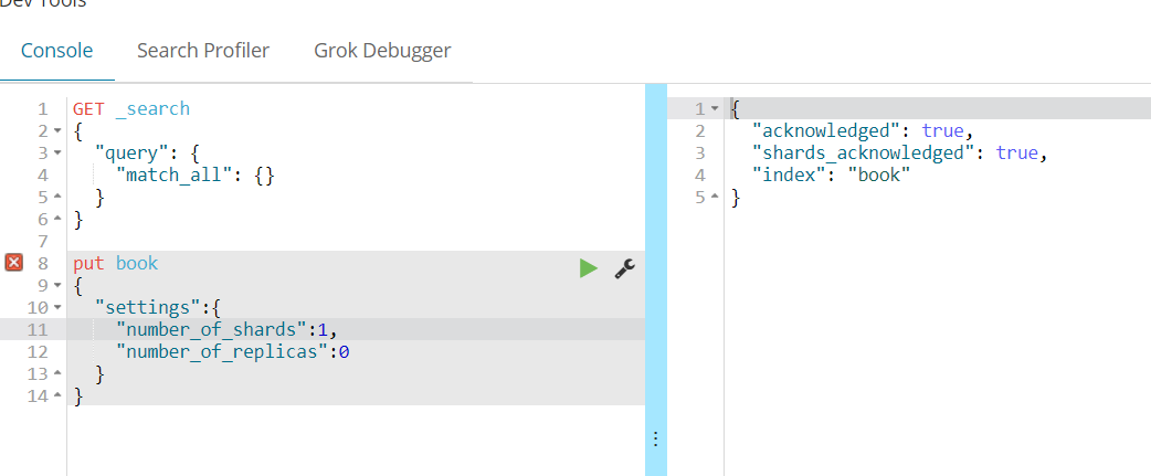 - 使用kibana创建索引: