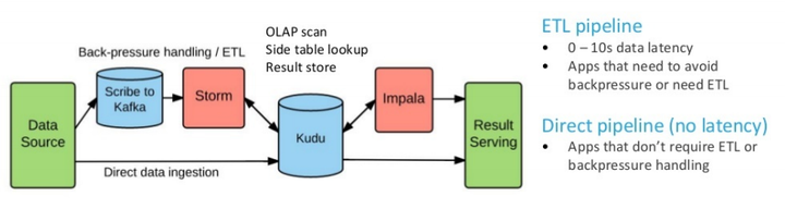- 反之,源系统的数据可以直接写入 Kudu,这种情况数据没有任何延迟