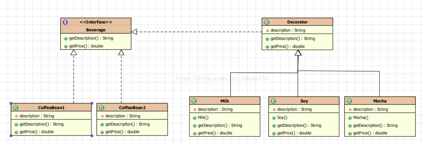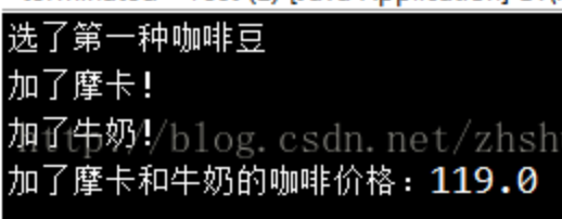 System.out.println(beverage.getDescription()+"\n加了摩卡和牛奶的咖啡价格:"+beverage.getPrice());