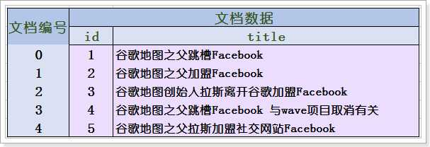 2)对文档中数据进行分词,得到词条。对词条进行编号,以词条创建索引。保存包含这些词条的文档的编号信息。