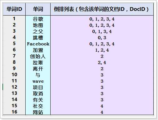 倒排表以字或词为关键字进行索引,表中关键字所对应的记录表项记录了出现这个字或词的所有文档,一个表项就是一个字表段,它记录该文档的ID和字符在该文档中出现的位置情况。