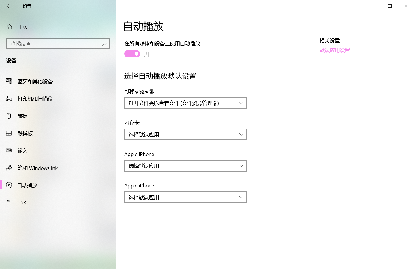 依次打开设备-自动播放。关闭在所有媒体和设备上自动播放。