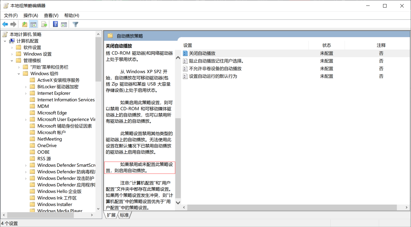 方法三,Windows+R快捷键输入gpedit.msc打开组策略,本操作部分操作系统不支持组策略无法操作。依次打开计算机配置-管理模板-Windows组件-自动播放策略。