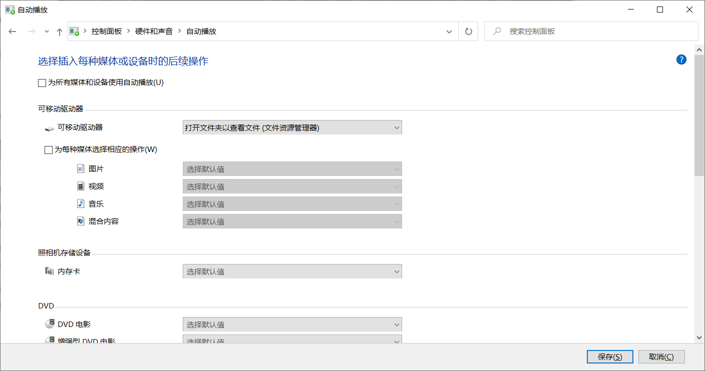 再来一种方法。电脑右键属性-控制面板-硬件和声音-自动播放,取消勾选为所有媒体和设备使用自动播放,保存设置。