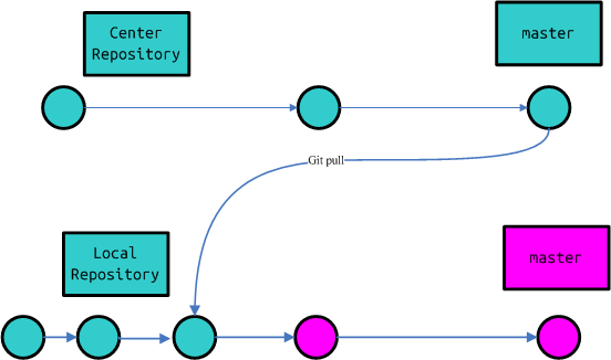 - 为了向官方项目发布修改,开发者将他们本地 master 分支“推送”到中央仓库。这一步等同于 svn commit,除了 Git 添加的是所有不在中央 master 分支上的提交。