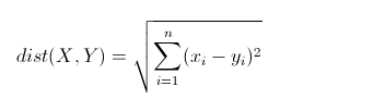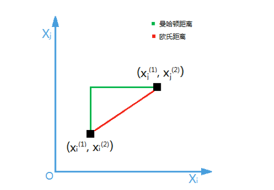 其中,两个实例之间的距离反映其相似程度。一般使用欧氏距离计算。