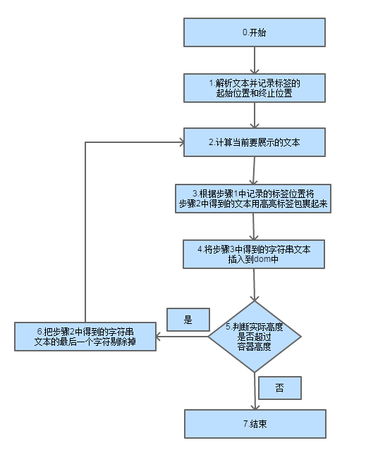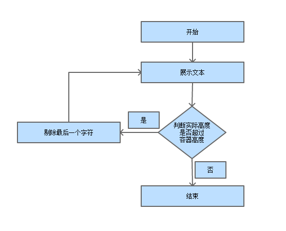它们的思路都是通过最终展示的实际高度是否超过预期的容器高度来判断是否需要删减文本。其流程图大概如下图所示。