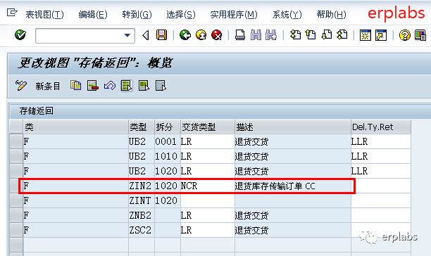 STO公司间采购订单类型ZINT,使用的交货类型为NLCC跨公司补货,可用性检查输入RP补充,交货类型2列也要维护为NLCC。公司间退货采购订单ZIN2,使用交货类型为NCR,保存。