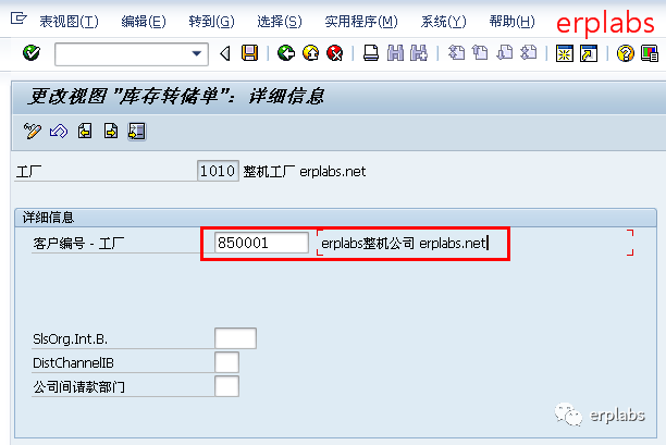 客户编号-工厂输入850001整机公司,此处设置客户编号与工厂1010的对应关系。