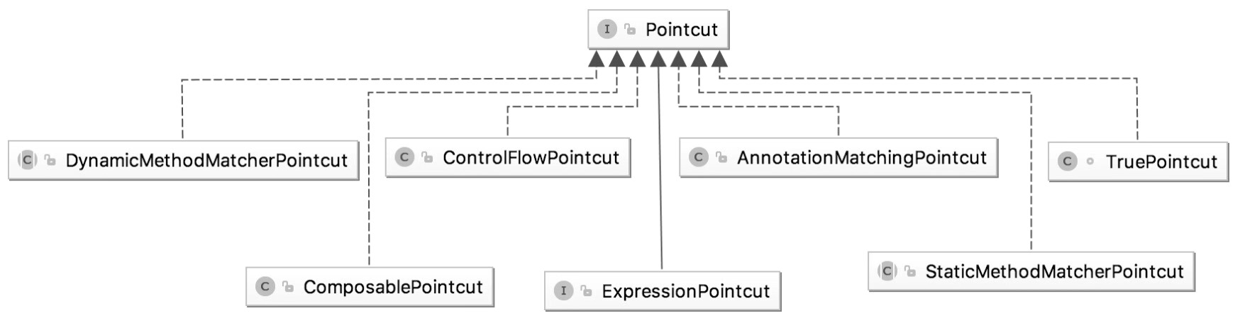 切入点是匹配连接点的拦截规则。之前使用的是注解@Pointcut,该注解是AspectJ中的。除了这个注解之外,Spring也提供了其他一些切入点类型:
