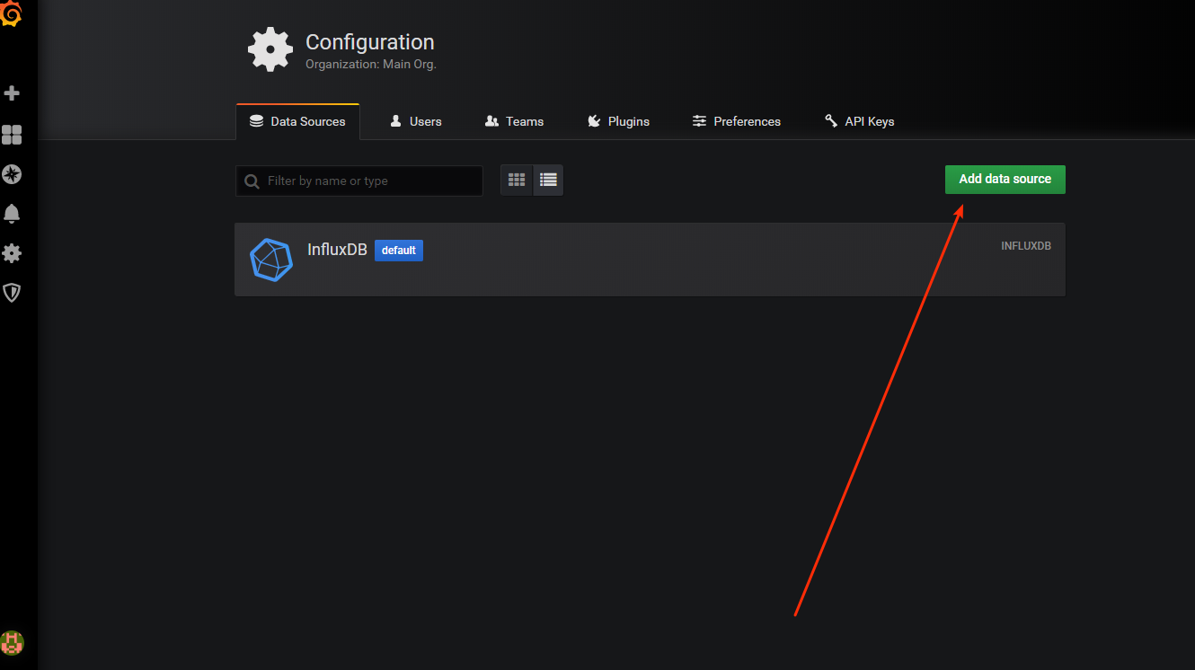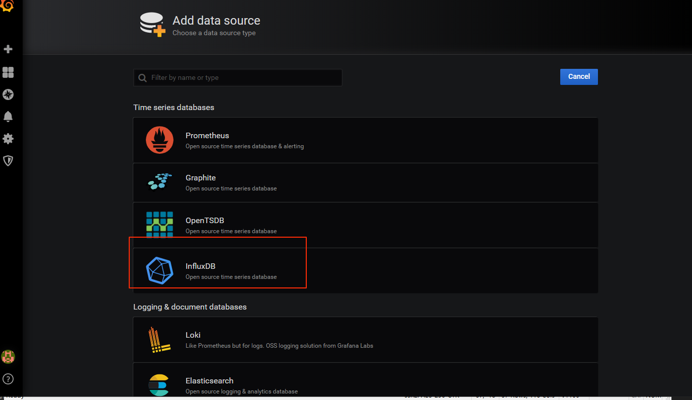 - 添加新的数据源,我这里是添加过了,所以会有一个influxdb的数据源显示。