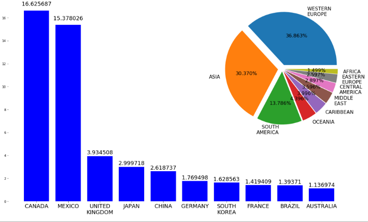 top10_arrivals_countries = ['CANADA','MEXICO','UNITED\nKINGDOM',\