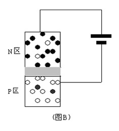要想很自然地说明问题,就要选择恰当地切入点。讲三极管的原理我们从二极管的原理入手讲起。二极管的结构与原理都很简单,内部一个PN结具有单向导电性,如示意图B。很明显图示二极管处于反偏状态,PN结截止。我们要特别注意这里的截止状态,实际上PN结截止时,总是会有很小的漏电流存在,也就是说PN结总是存在着反向关不断的现象,PN结的单向导电性并不是百分之百。