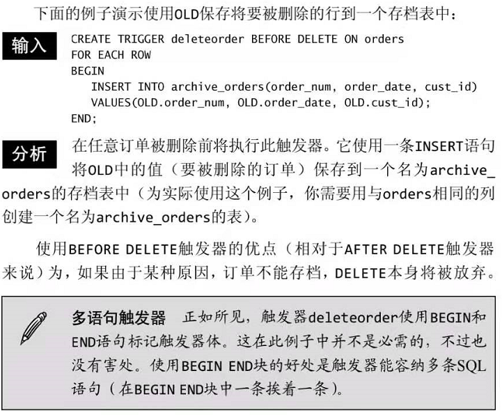DELETE触发器在DELETE语句执行之前或之后执行。需要知道以下两点