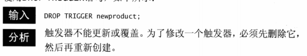 - 创建触发器可能需要特殊的安全访问权限,但是,触发器的执行是自动的。如果INSERT、UPDATE或DELETE语句能够执行,则相关的触发器也能执行