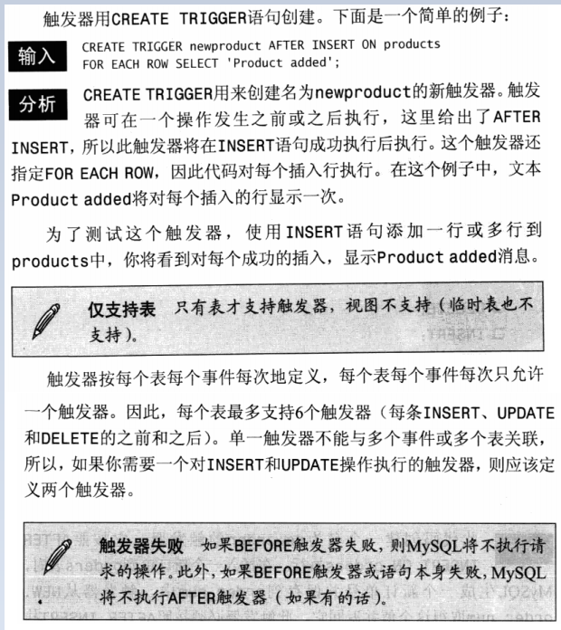 - 与其他DBMS相比,MySQL 5中支持的触发器相当初级。