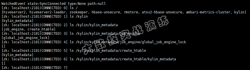 Kylin启动成功后,会在Zookeeper中注册/kylin的Znode节点,里面包含job_engine与create_htable的Znode节点,其中create_htable与HBase服务有关。