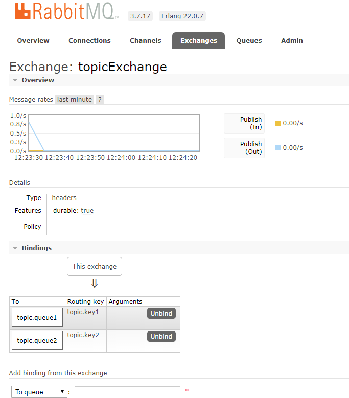 交换器主要有四种类型:direct、fanout、topic、headers,这里的交换器是 fanout发布/订阅模式
