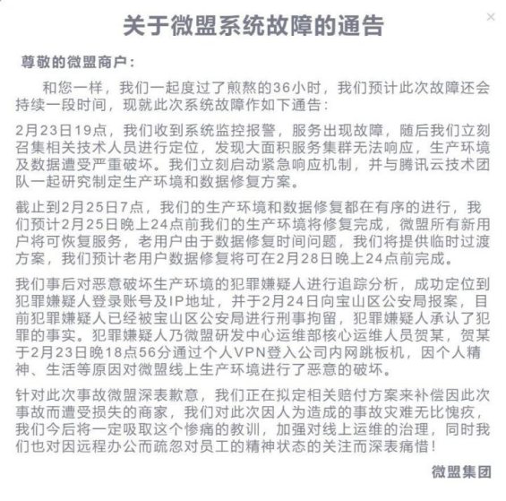 此举直接给公司带来数10亿的市值蒸发损失!在这个"远程办公”的节骨眼出事了。竟然是因为内部人员因个人精神、生活等原因对公司数据库进行了恶意的破坏!